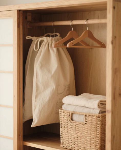 Fabric Dust Bag (✅ ): Usually made of breathable materials like cotton, canvas, or flannel, they ensure air circulation, prevent moisture buildup, and avoid mold, odors, or yellowing caused by stuffiness. This is especially important for natural materials like wool, silk, and leather.