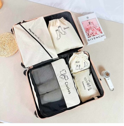 One of the biggest advantages is that packaging sets are coordinated. Matching drawstring bags, cosmetic pouches, and organizers not only look premium but also simplify packing. Travelers can keep everything together while maintaining a consistent, stylish look. Conclusion