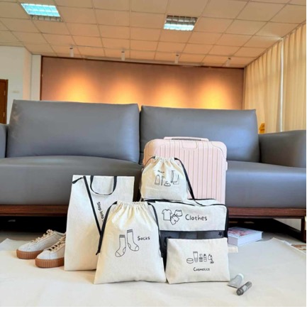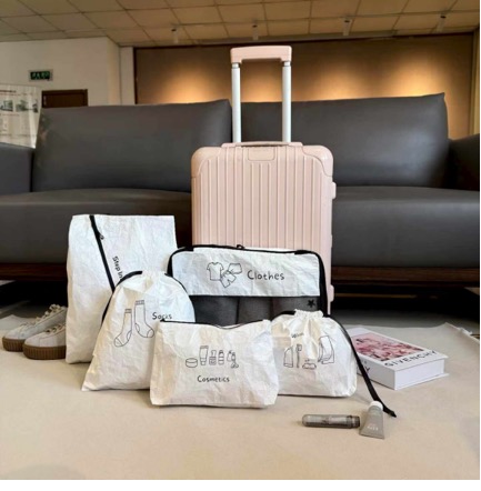 Packaging sets offer practical solutions for compartmentalizing items: Drawstring bags for clothes or shoes Cosmetic pouches for toiletries and makeup Document sleeves for passports, tickets, or important papers Travel organizers for electronics, chargers, and accessories Having separate compartments keeps your suitcase neat, reduces stress, and makes it easy to find exactly what you need when you’re on the move. 4. Reusable & Sustainable