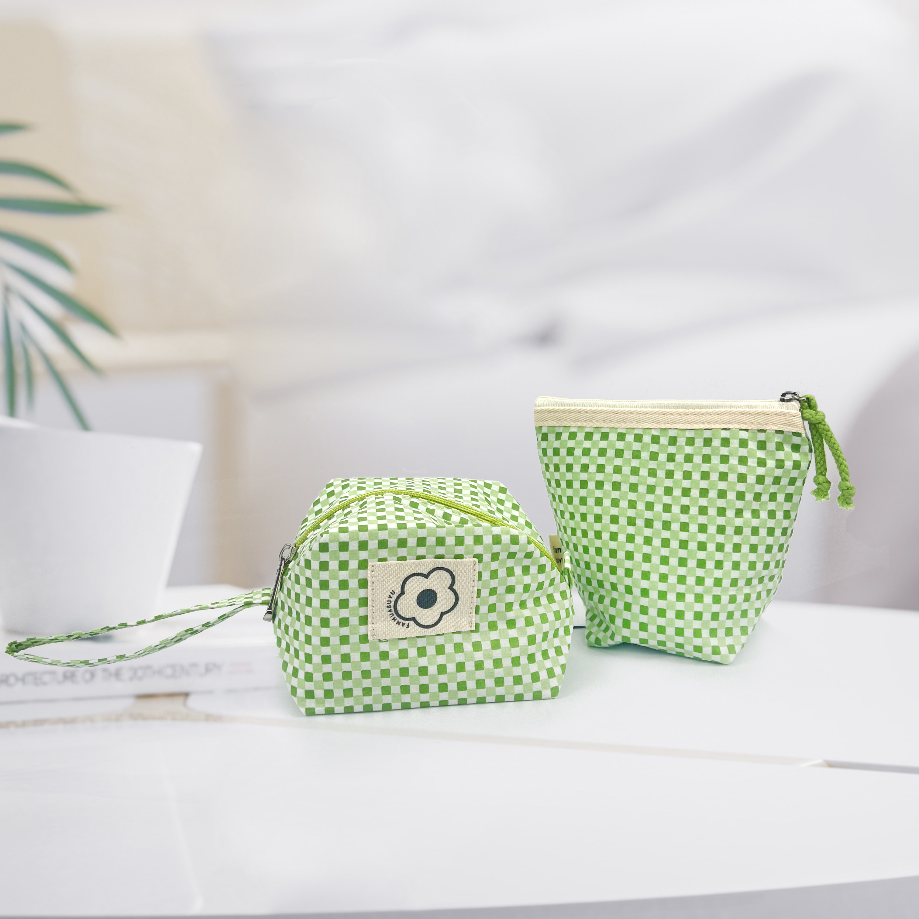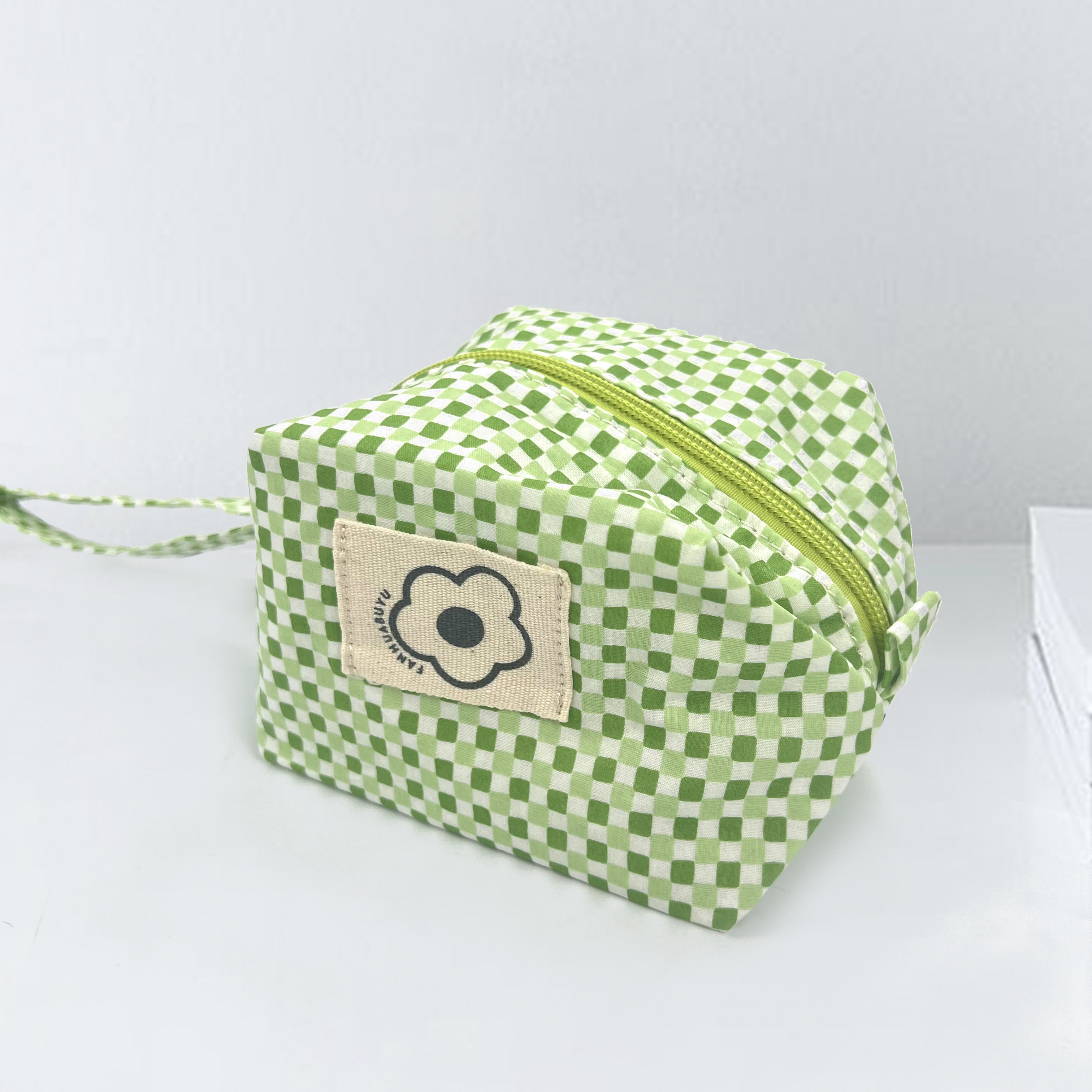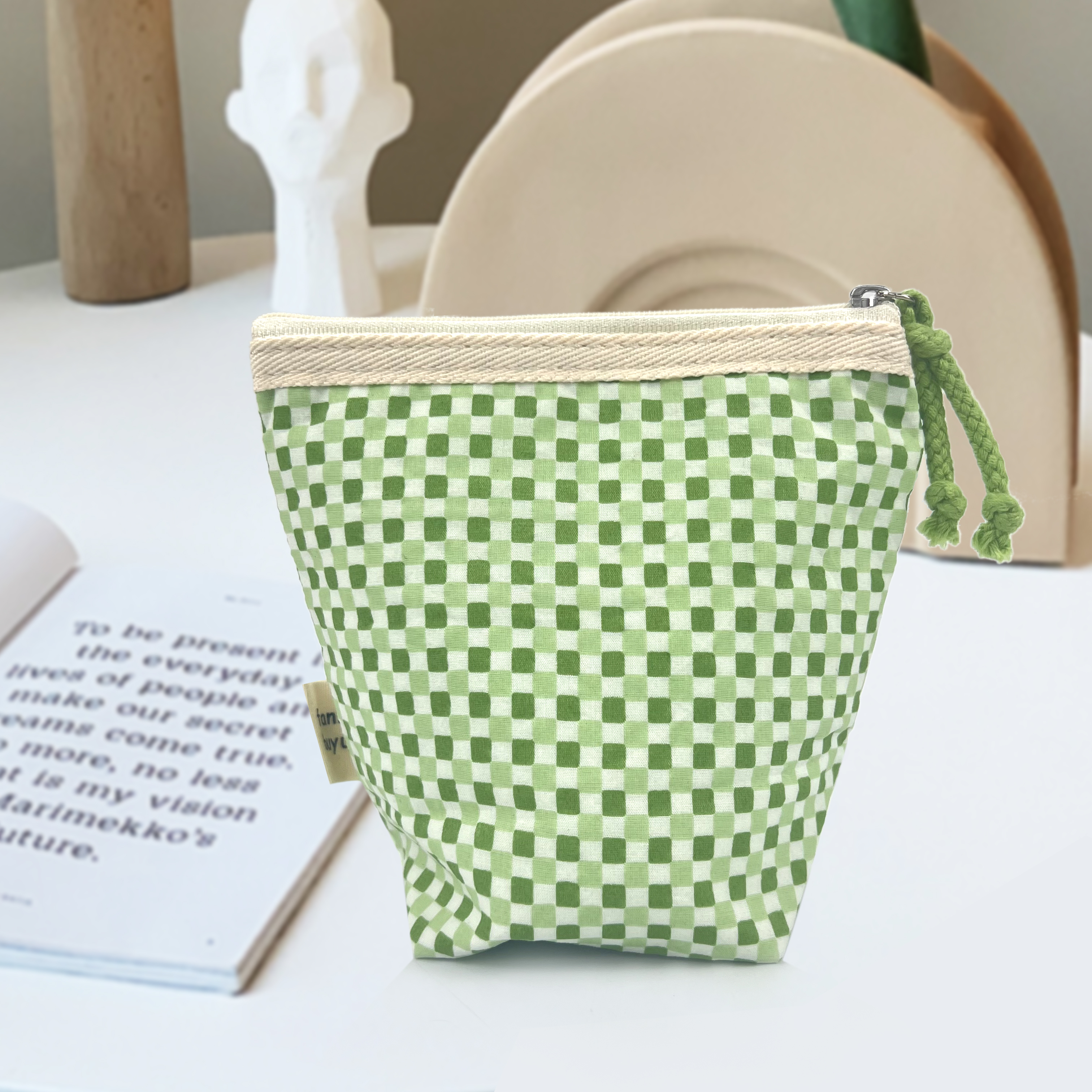 green tartan makeup pouch