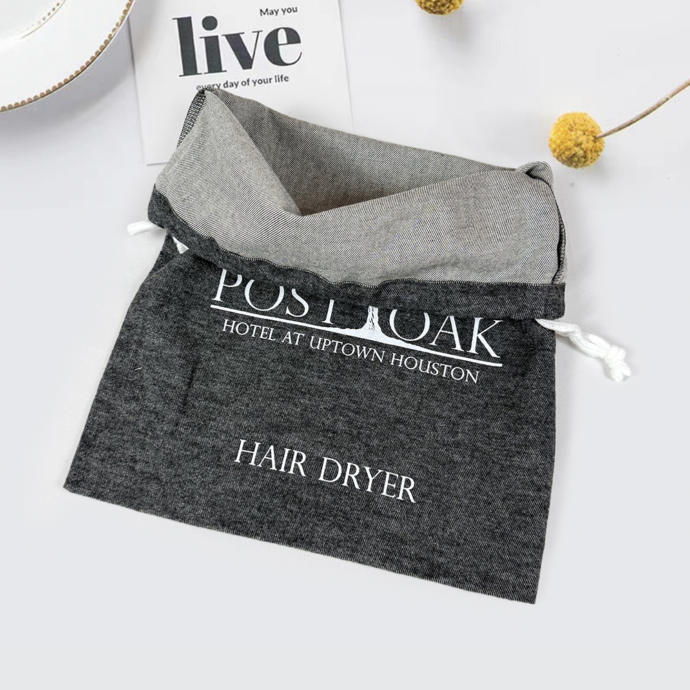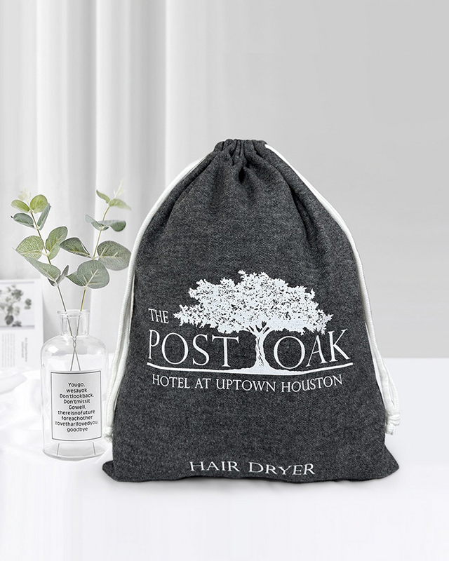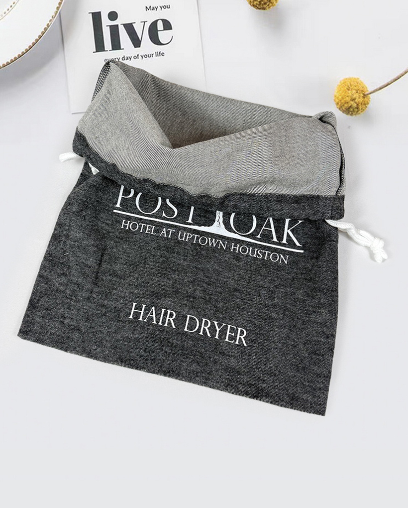 Enhance your daily routine with this stylish grey cotton brushed drawstring bag designed specifically for hair dryers, showcasing a subtle white silk-screened logo and durable white cord that adds a clean, premium touch while the ultra-soft brushed texture ensures a comfortable grip and practical storage solution for keeping your essentials neatly secured and easily accessible.
