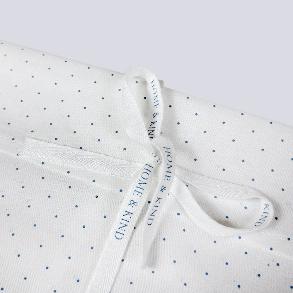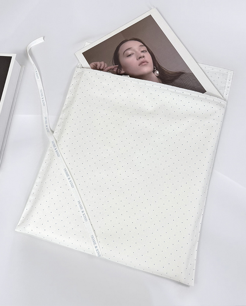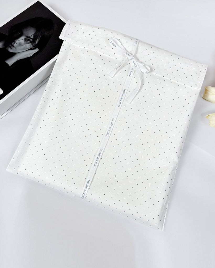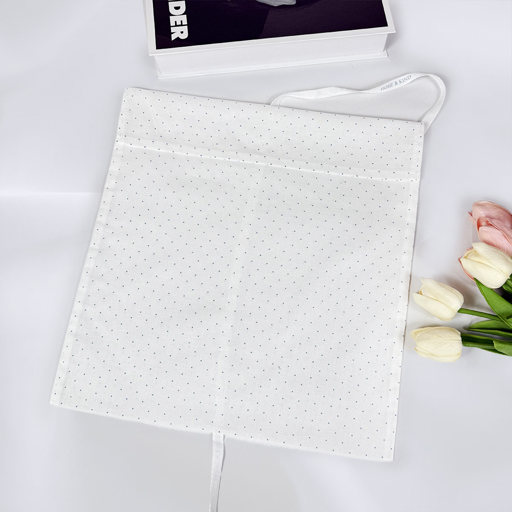 This exquisite full-print polka dot cotton drawstring bag serves as the perfect protective dust cover for your prized possessions, crafted from lightweight cotton and featuring an all-over vibrant polka dot pattern for a touch of timeless beauty, the bag is securely closed with a durable drawstring that boasts a finely printed logo for subtle brand recognition, making it an ideal and stylish packaging or storage solution for a wide range of products from fashion accessories to delicate garments.