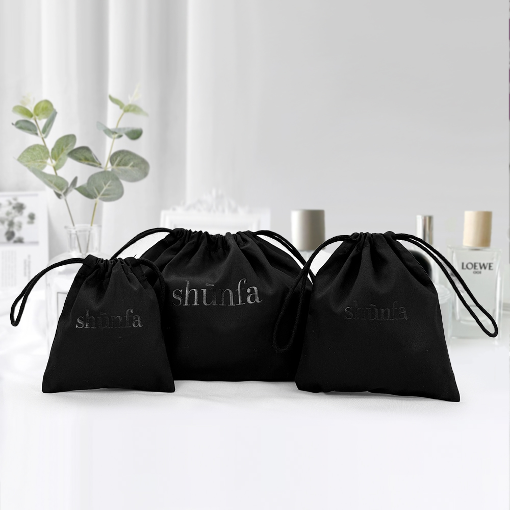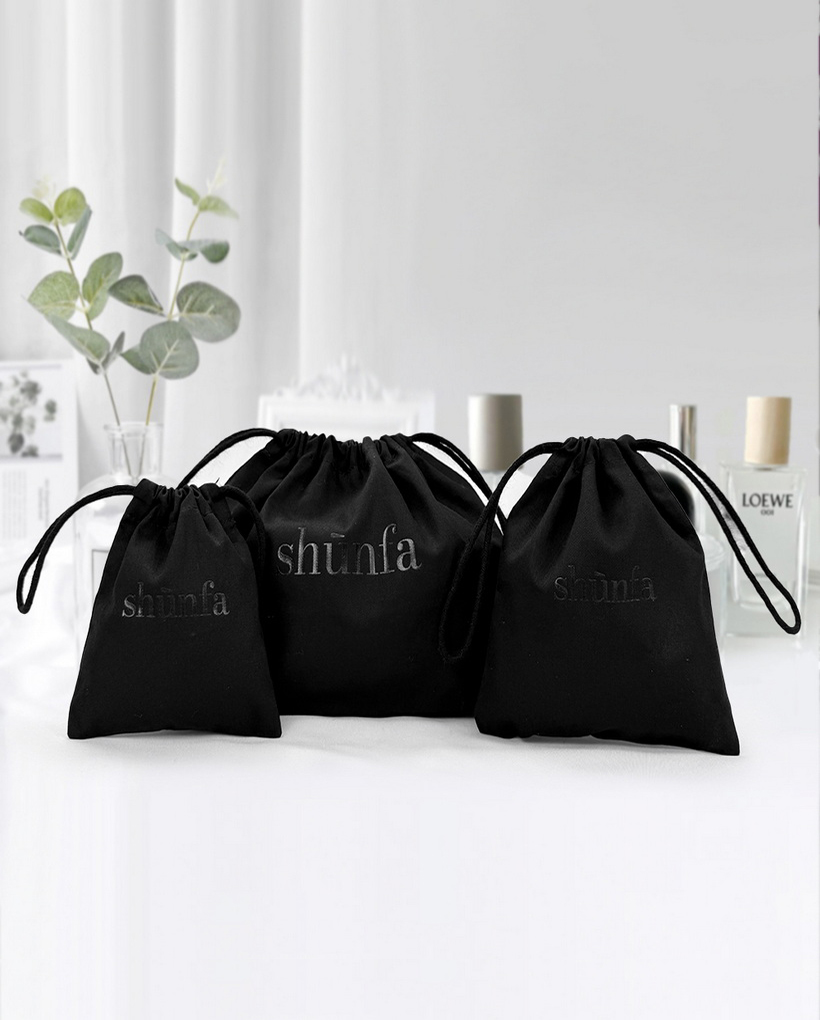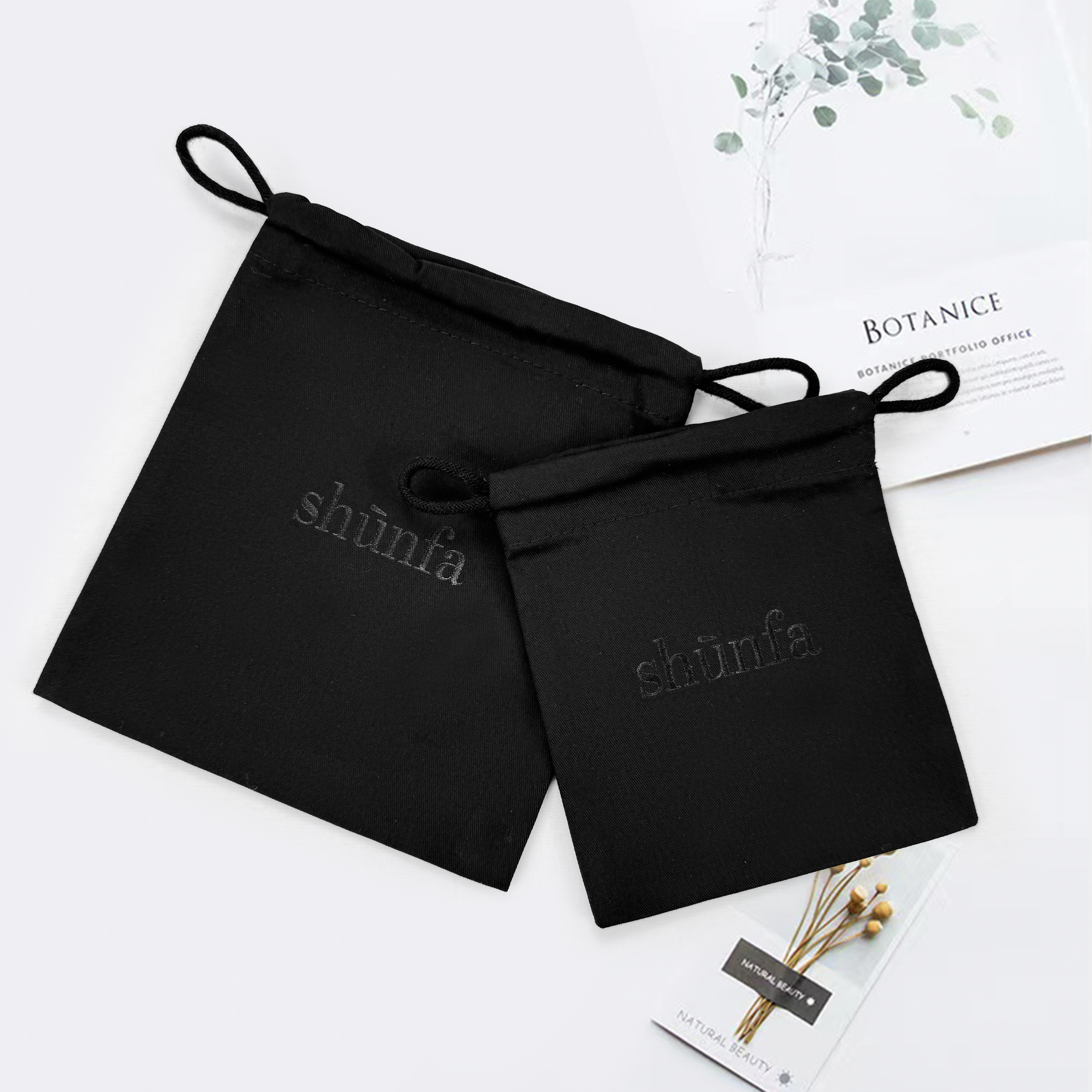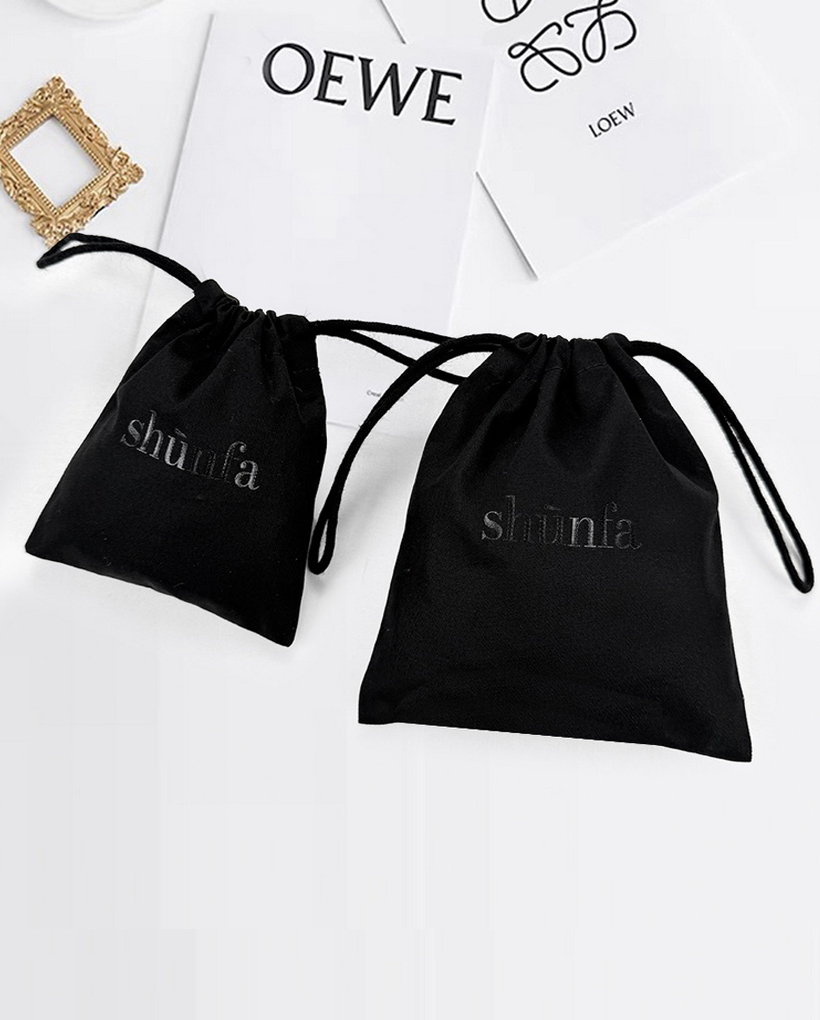 Crafted from high-quality black twill cotton with exceptional color fastness, this drawstring dust bag offers reliable protection for various products, featuring discreet hidden cord ends and a sleek black oil logo that embodies understated luxury and a premium feel, making it an ideal choice for elegant, high-end packaging solutions that exude sophistication and practicality.
