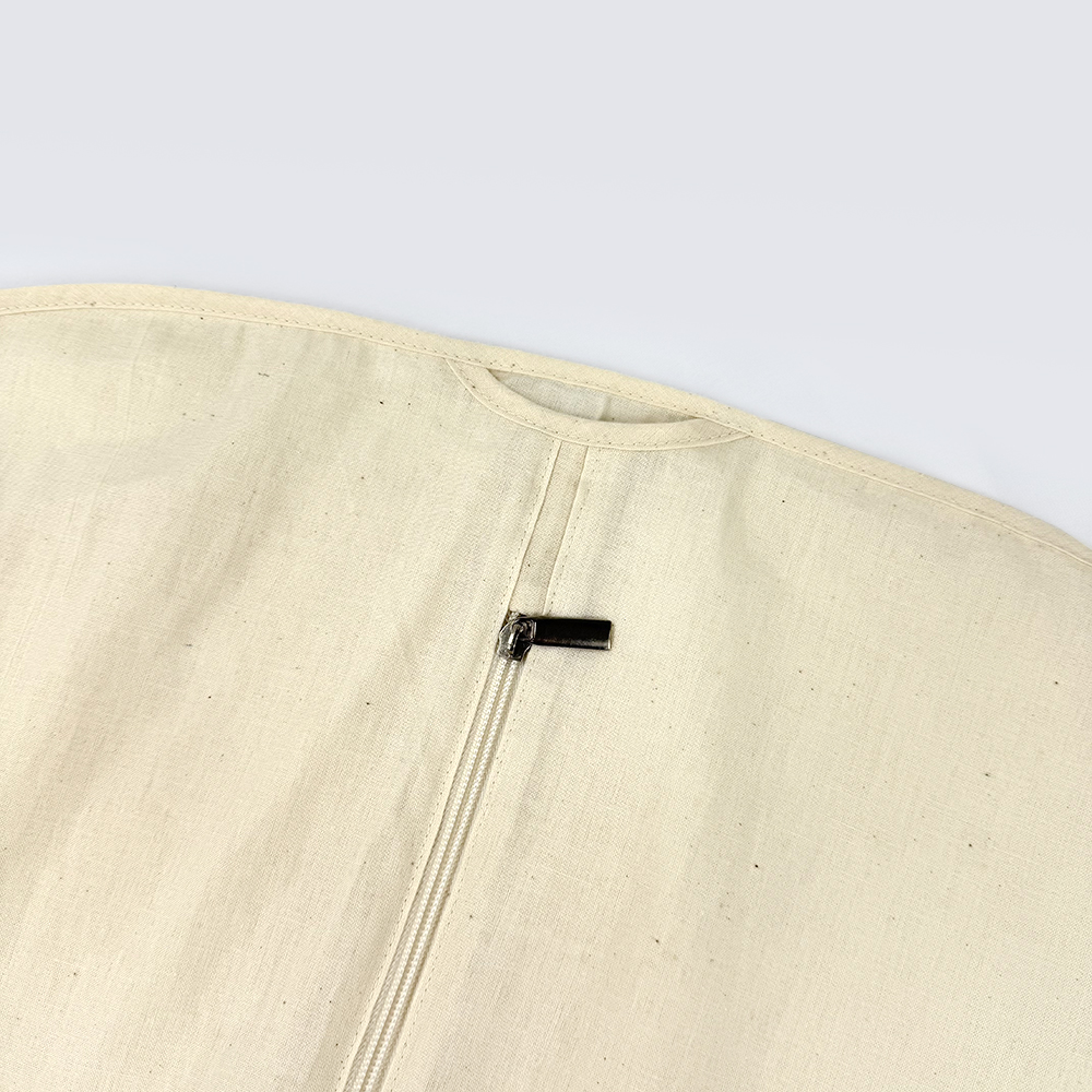Crafted from natural cotton, this garment cover combines functionality with timeless design. It gently shields your suits, coats, and jackets, allowing them to breathe while maintaining their shape and elegance.