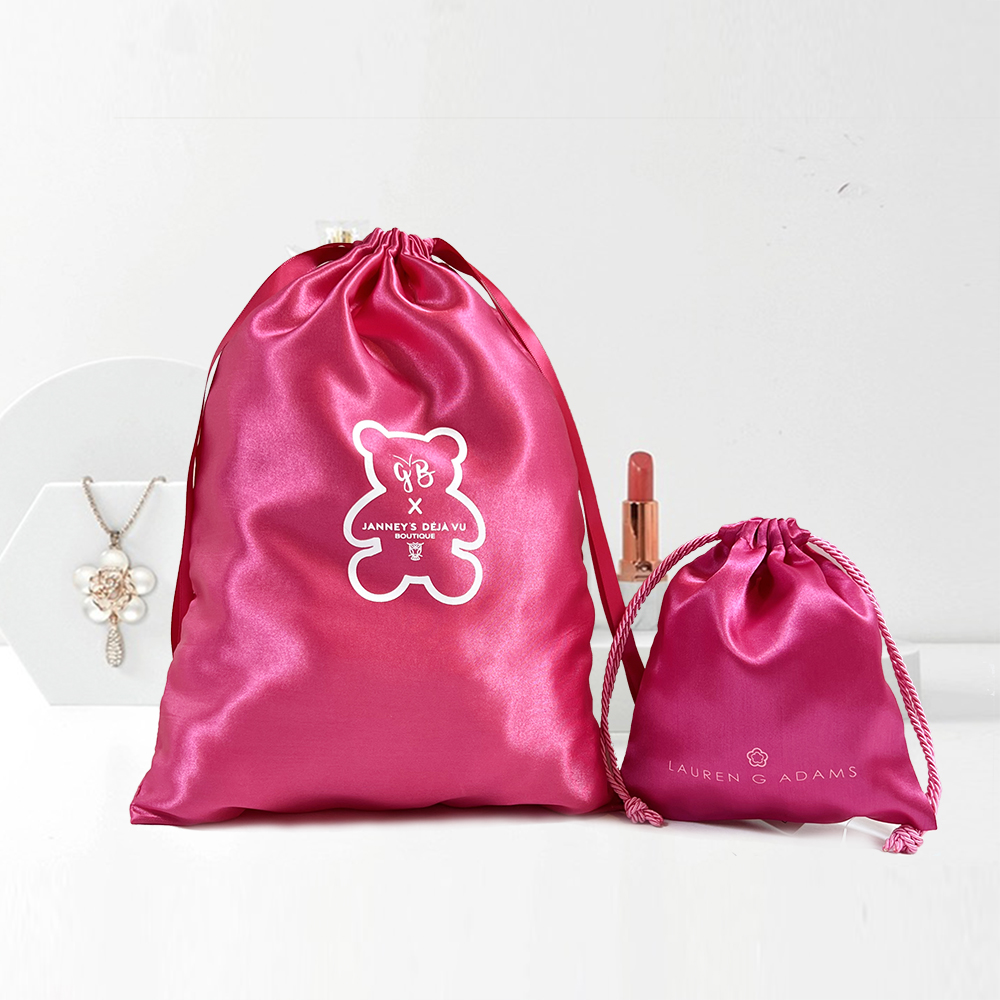 These luxury printed satin drawstring bags combine softness, shine, and artistic design, making them ideal for premium product packaging. The collection includes three unique patterns—a cute purple cartoon cat print, an elegant pink floral design, and a nature-themed golden bird motif. Crafted with silky satin fabric and secure drawstring closures, these bags are perfect for jewelry, cosmetics, accessories, and upscale gift packaging. Custom designs and branding options are available to elevate your product presentation.