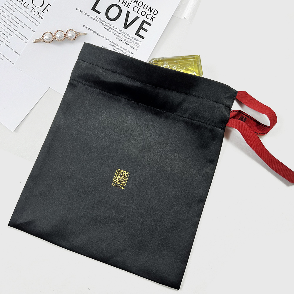 Elevate your brand packaging with this premium black satin drawstring pouch, designed to deliver both elegance and functionality. Crafted from smooth, silky satin fabric, the pouch offers a luxurious sheen and soft touch, ideal for presenting high-end items such as perfumes, jewelry, cosmetics, candles, gift sets, and boutique accessories.