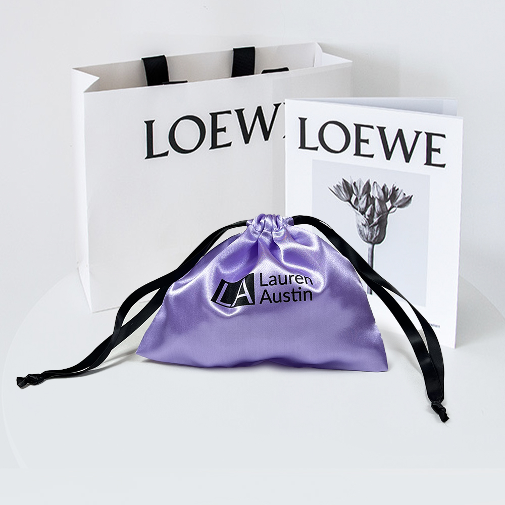 This elegant black satin drawstring pouch is designed with a smooth, silky finish that exudes luxury and sophistication. Made from high-quality satin fabric, the bag is soft to the touch, lightweight, and durable, making it ideal for everyday storage and premium packaging needs.