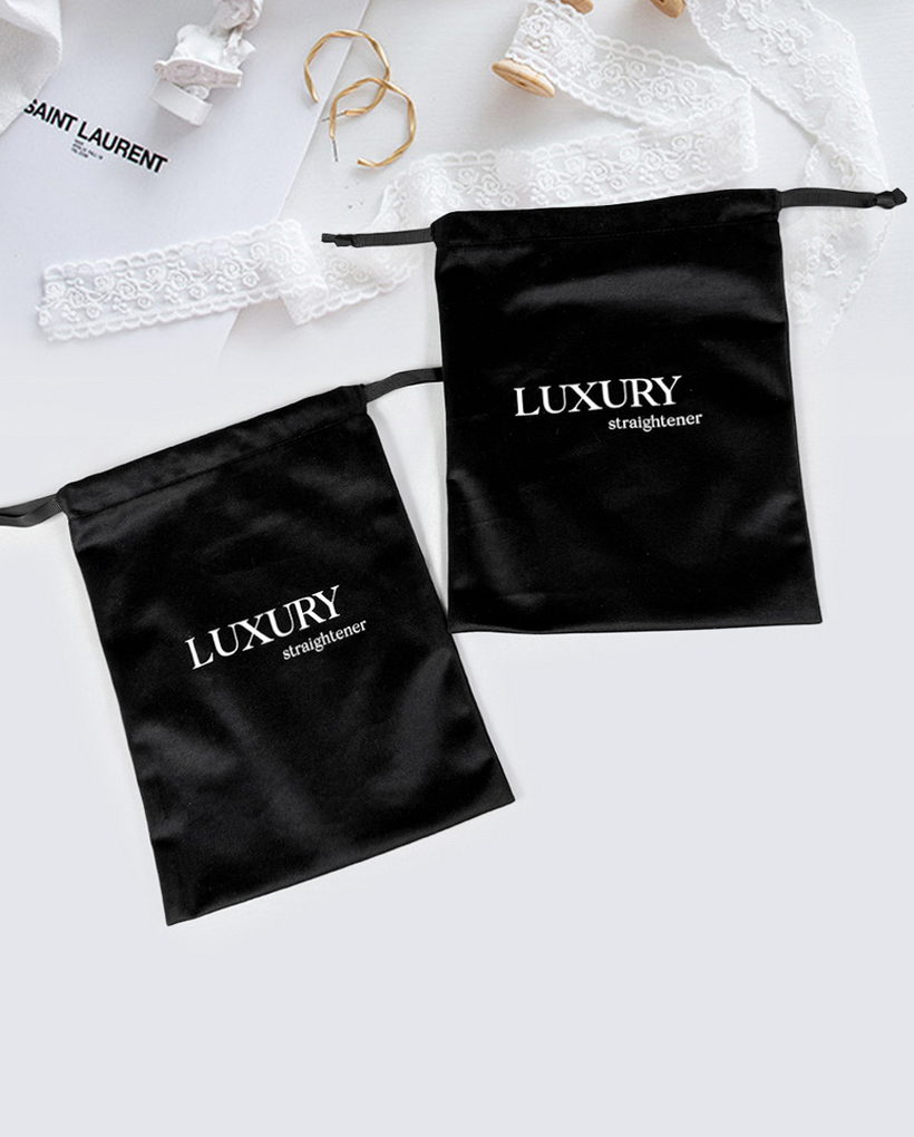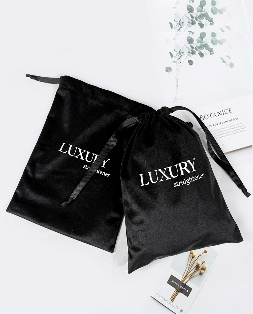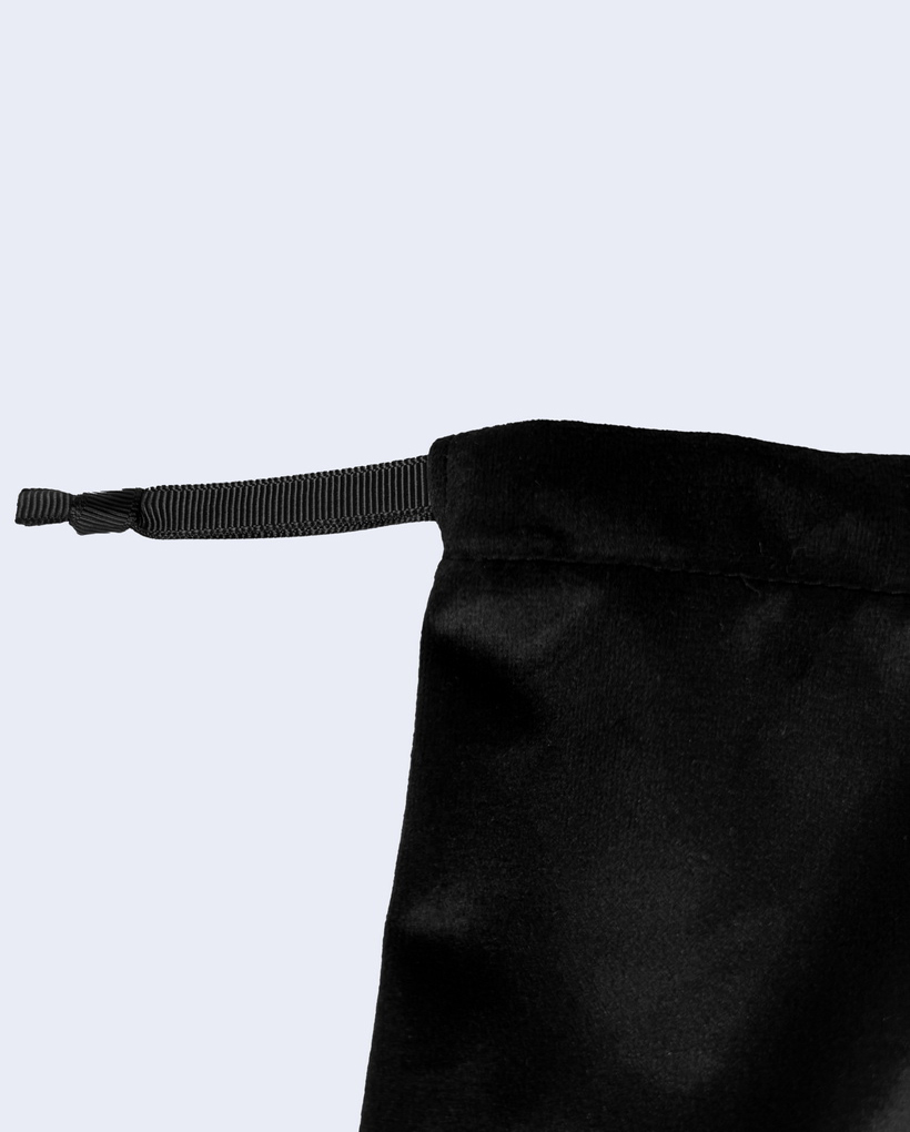 This premium black velvet drawstring pouch combines luxury and functionality, featuring a clean white screen-printed logo for a polished look. The soft velvet fabric offers a plush texture while ensuring durability, making it ideal for storing jewelry, accessories, or as an elegant branded gift bag. The secure twisted cord closure adds a refined touch, and the minimalist white logo contrasts beautifully against the deep black velvet. Perfect for corporate gifting, retail packaging, or personal use, this pouch delivers a sophisticated unboxing experience with its understated yet stylish design.