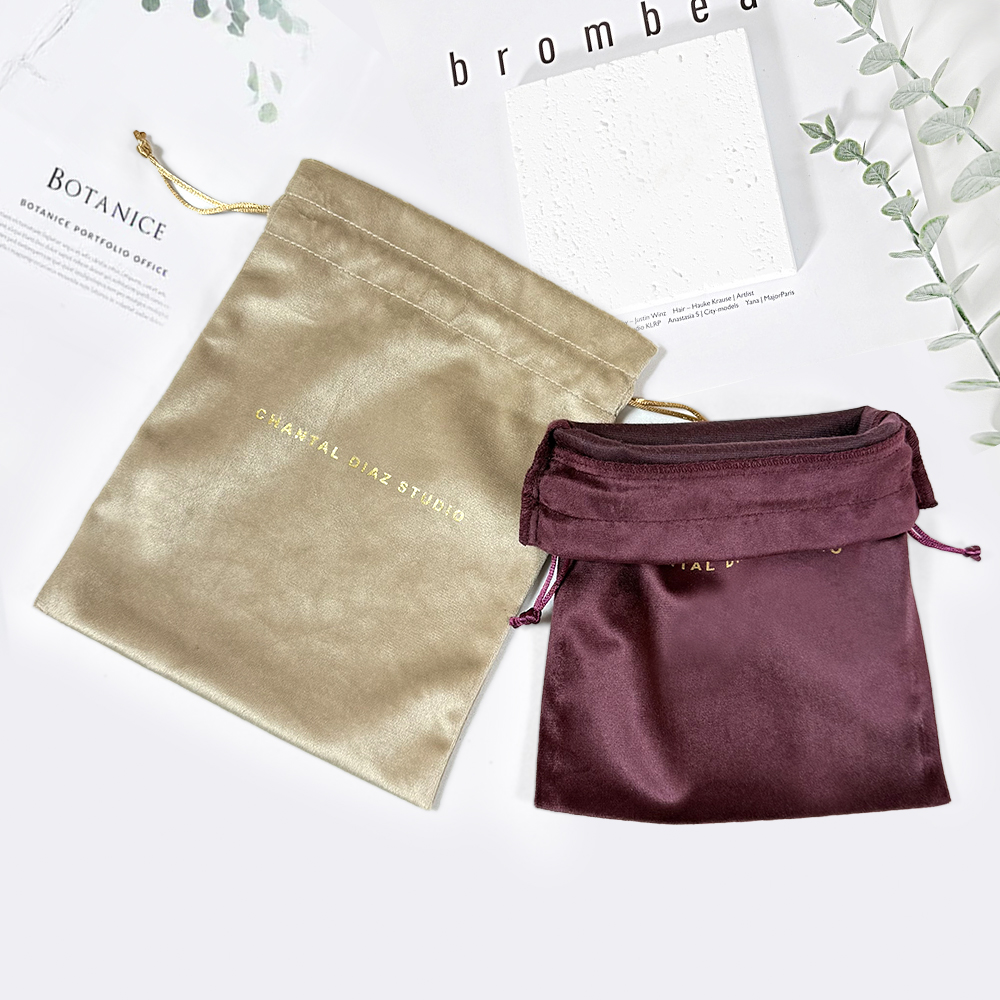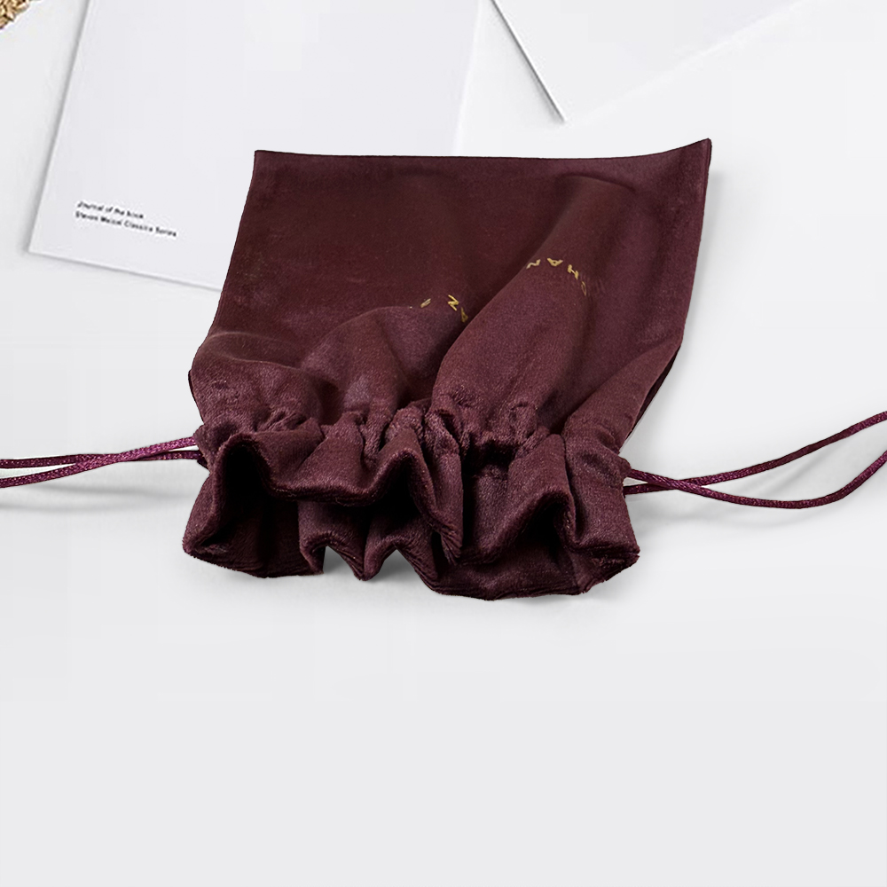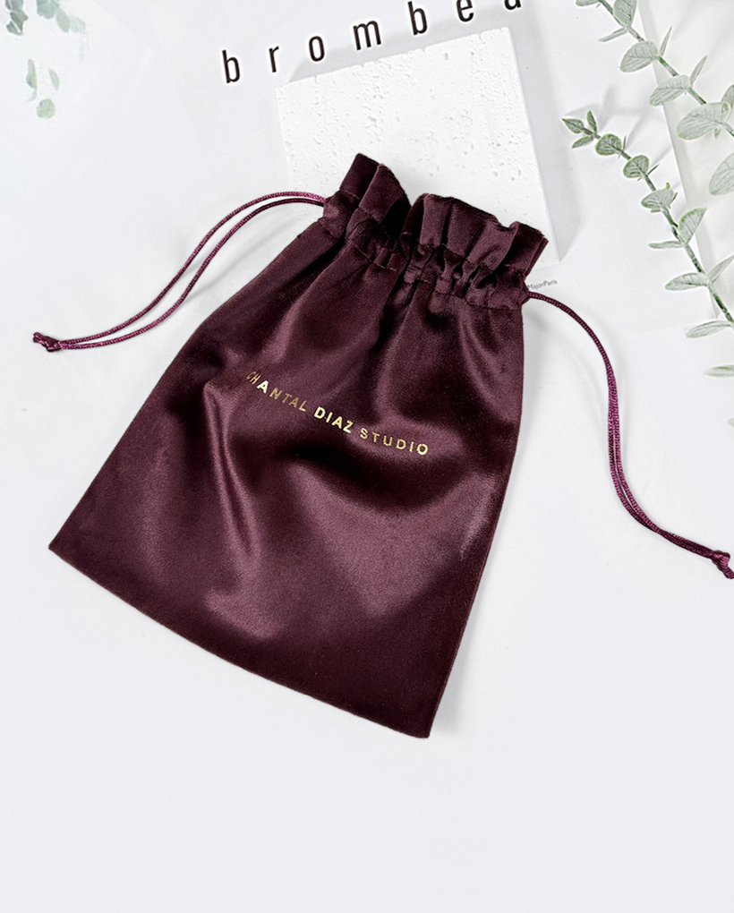 Elevate your gifting and storage with our premium velvet drawstring pouch, expertly crafted in sophisticated maroon and serene beige hues inspired by Korean aesthetics; featuring a lustrous gold foil logo for timeless elegance, this versatile bag is ideal for safeguarding jewelry, cosmetics, or small treasures while serving as an exquisite eco-friendly gift solution, combining luxurious tactile velvet texture with practical drawstring closure for everyday refinement and reusable charm.